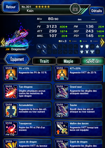 Vous pouvez voir le détail de l'unité, l'Améliorer ou l'Eveiller. L'Améliorer consiste à lui faire "absorber" soit un personnage lambda que vous sacrifiez, soit une unité spéciale, et cela va augmenter son xp.